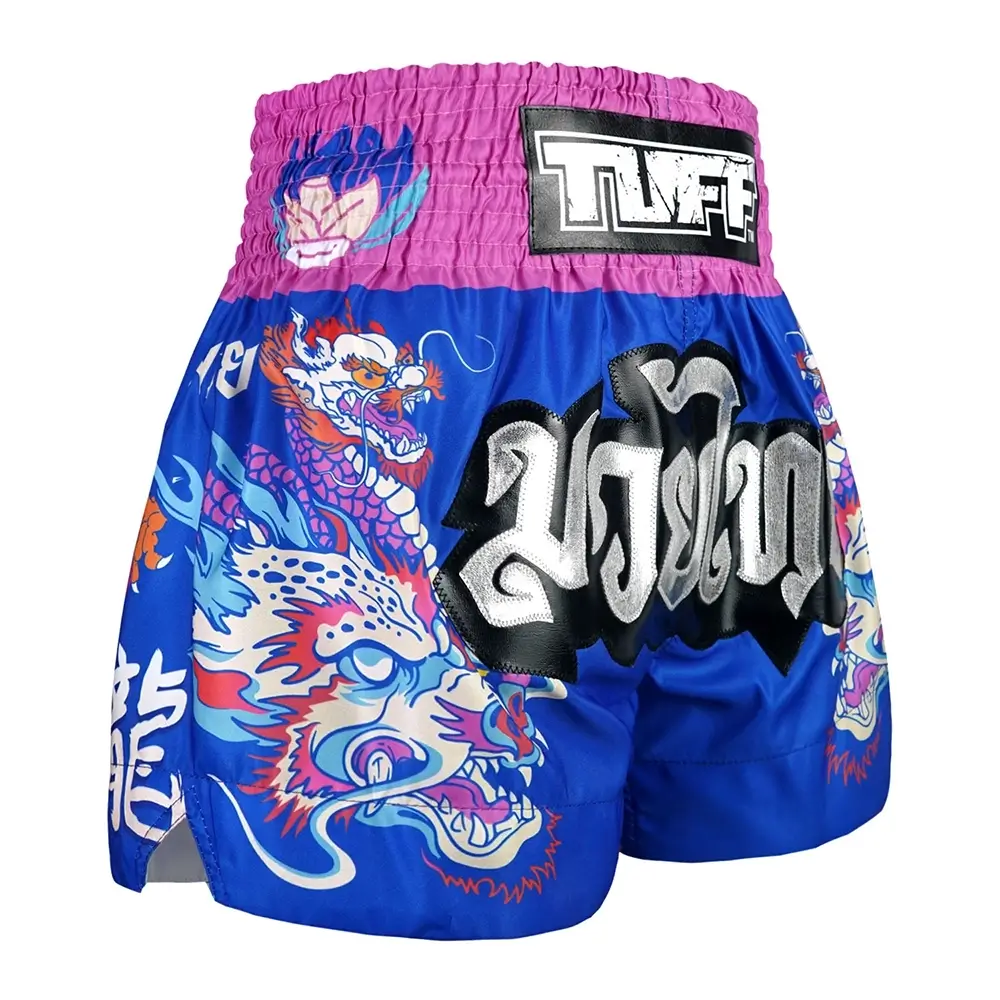 Traditional style Muay Thai shorts with full waistband and wide leg cut.