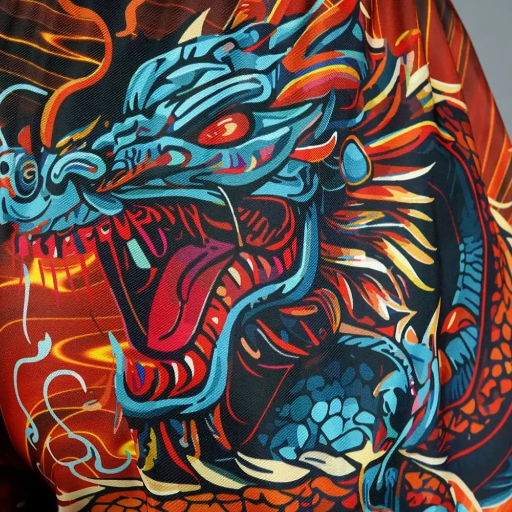 A celestial dragon, known as “Seiryu” in Japanese. Seiryu is one of the four celestial guardians in Japanese mythology. It symbolizes the stability of the homeland, bringing peace and prosperity. Integrated with the ancient Japanese warrior spirit, the shorts embody the disciplined and honourable tradition of Japanese Samurai. While on the bottom of the shorts the Japanese word that translates to “Muay Thai,” Allowing the wearer to train and strengthen their Thai martial arts, similar to the discipline of Samurai.
