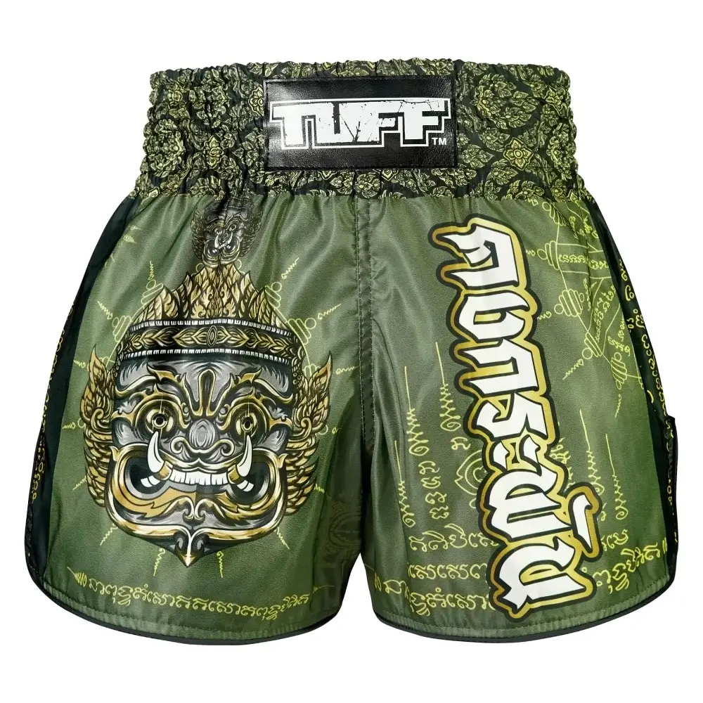 This Yantra is popular among both Thai and international tattoo enthusiasts, known for its versatile protective properties. Combined with the Thai words “คงกระพัน” (Khong Kraphan) on the front of the shorts, it symbolizes resilience against any harm or danger, making these shorts truly unparalleled.